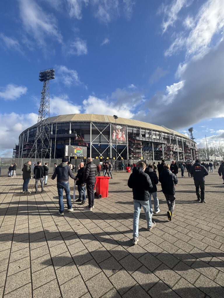 Onwillekeurig gingen mijn gedachten uit naar het boek ‘tussen het tuig’ van Bill Buford. Niet dat hier allemaal hooligans stonden, integendeel. Maar de nette dames waren een uitzondering tussen een vol perron chagrijnige Feyenoorders. Hier en daar klonk een vloek die de dames deed omkijken.