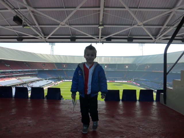 Bastiaan ging weer een keertje mee naar De Kuip. Tot nu toen wonnen ze alle wedstrijden dat hij meeging. Hier trekt hij zijn ‘do you want some aggro mate’ gezicht. Over een paar jaar gaat ie er een boek over schrijven.