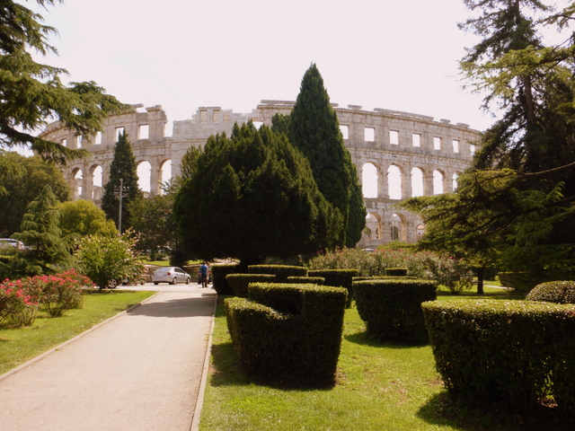 Wij van peenvogel zijn niet vies van een beetje cultuur. En dus haalden we vandaag de camperT van zijn plek voor een tripje naar Pula, zo’n 80 kilometer zuidwaarts. Voor een bezoek aan het amfitheater. Er zijn mensen die zo’n stadion een arena noemen. Wij niet.
